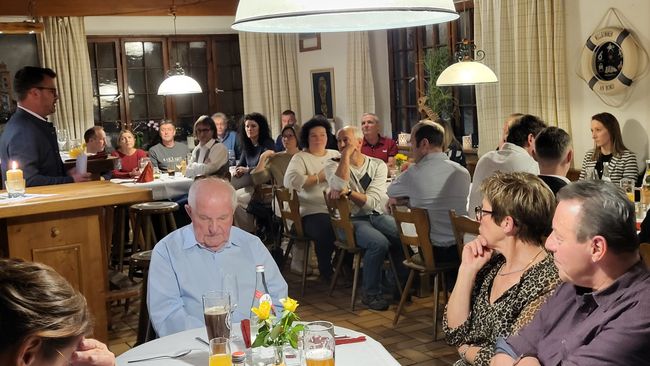 Erfreulich war die Mischung aus jung und alt sowie die zahlreiche Teilnahme unserer Partnerinnen, so dass interessante Gespräche und einige Anekdoten aus vergangenen Jahren für einen gemütlichen Abend sorgten.